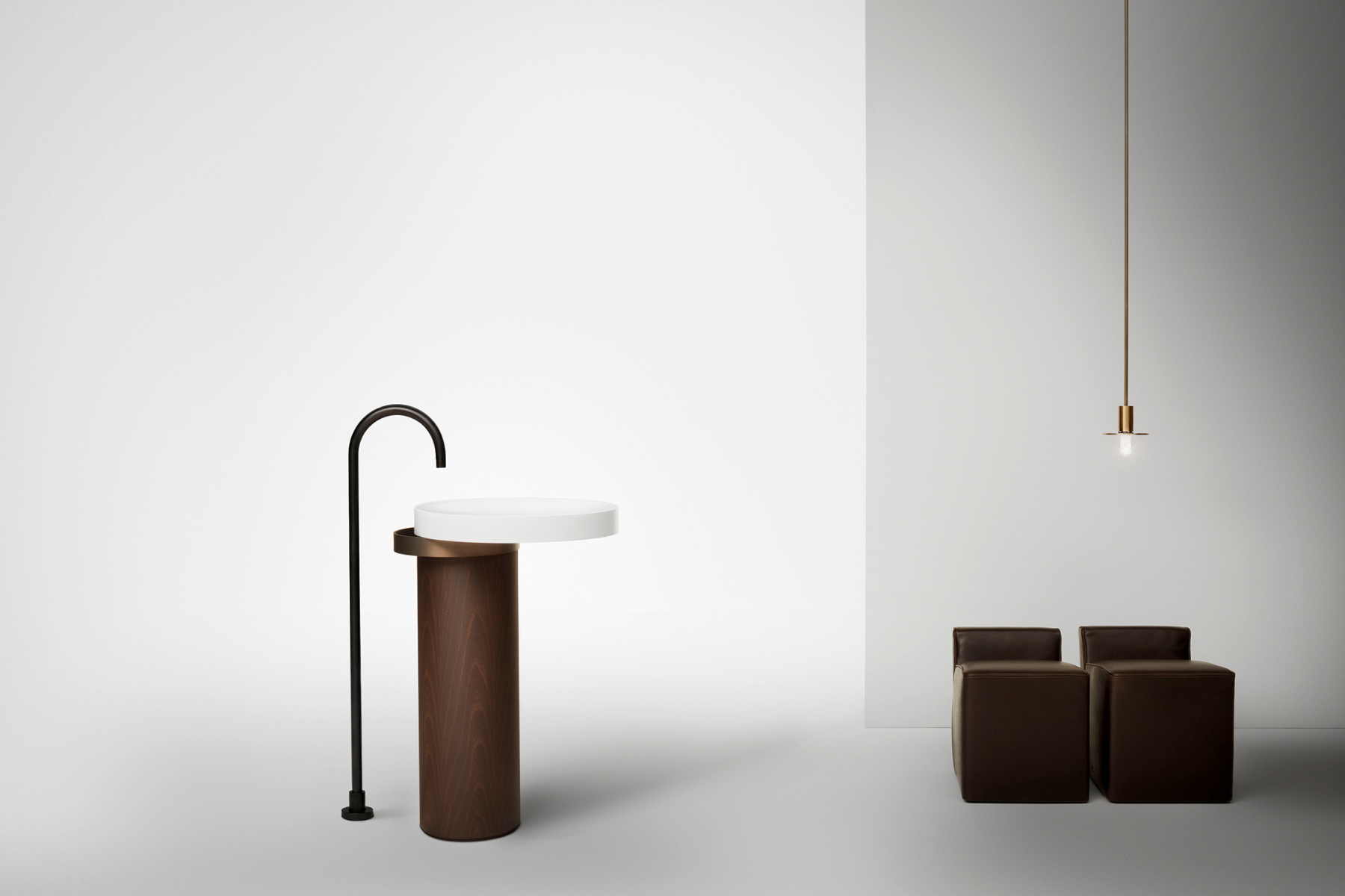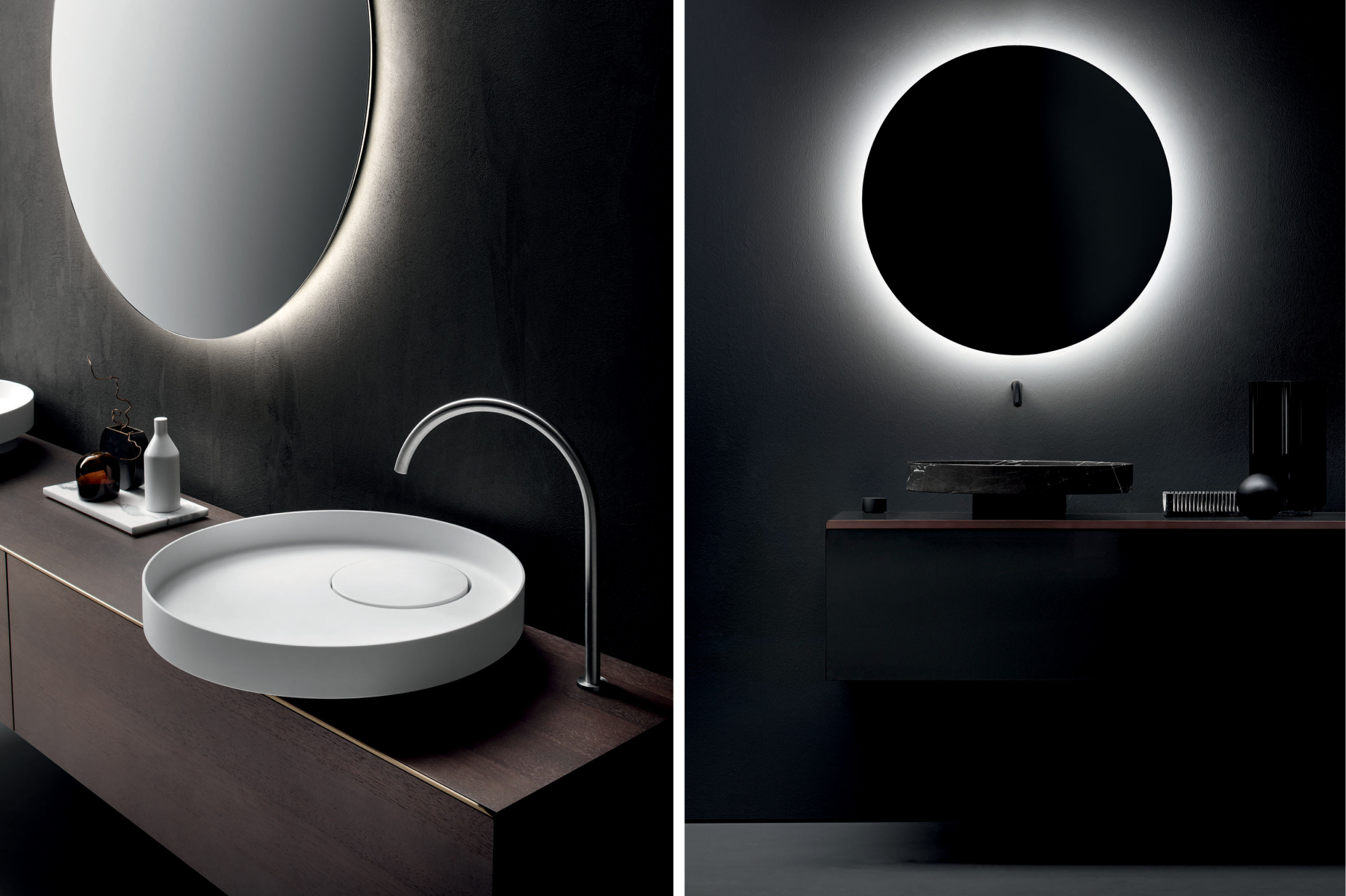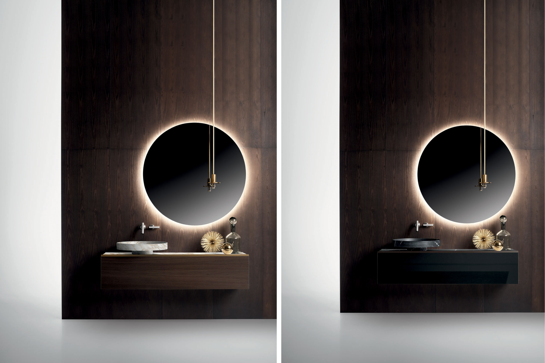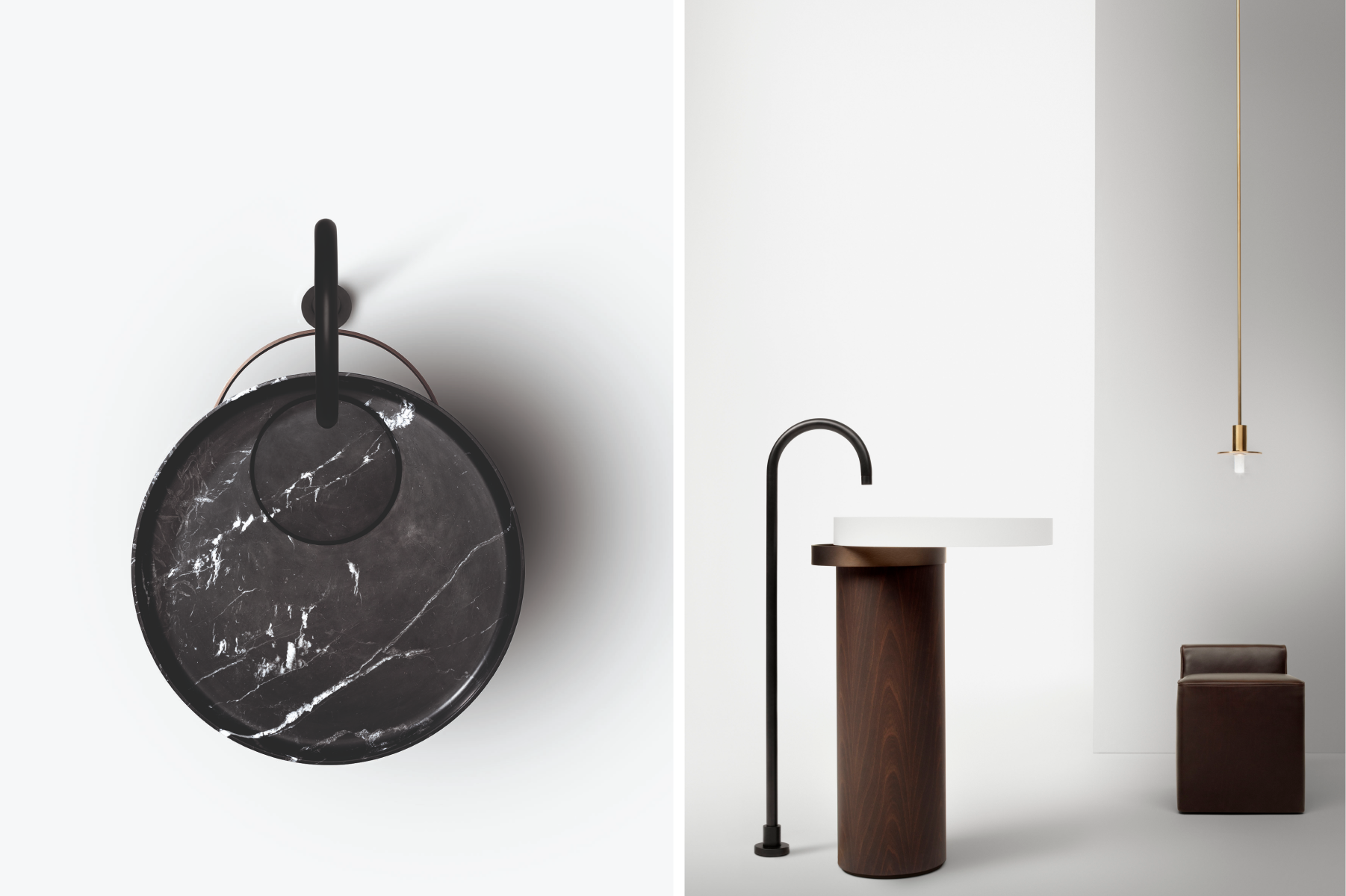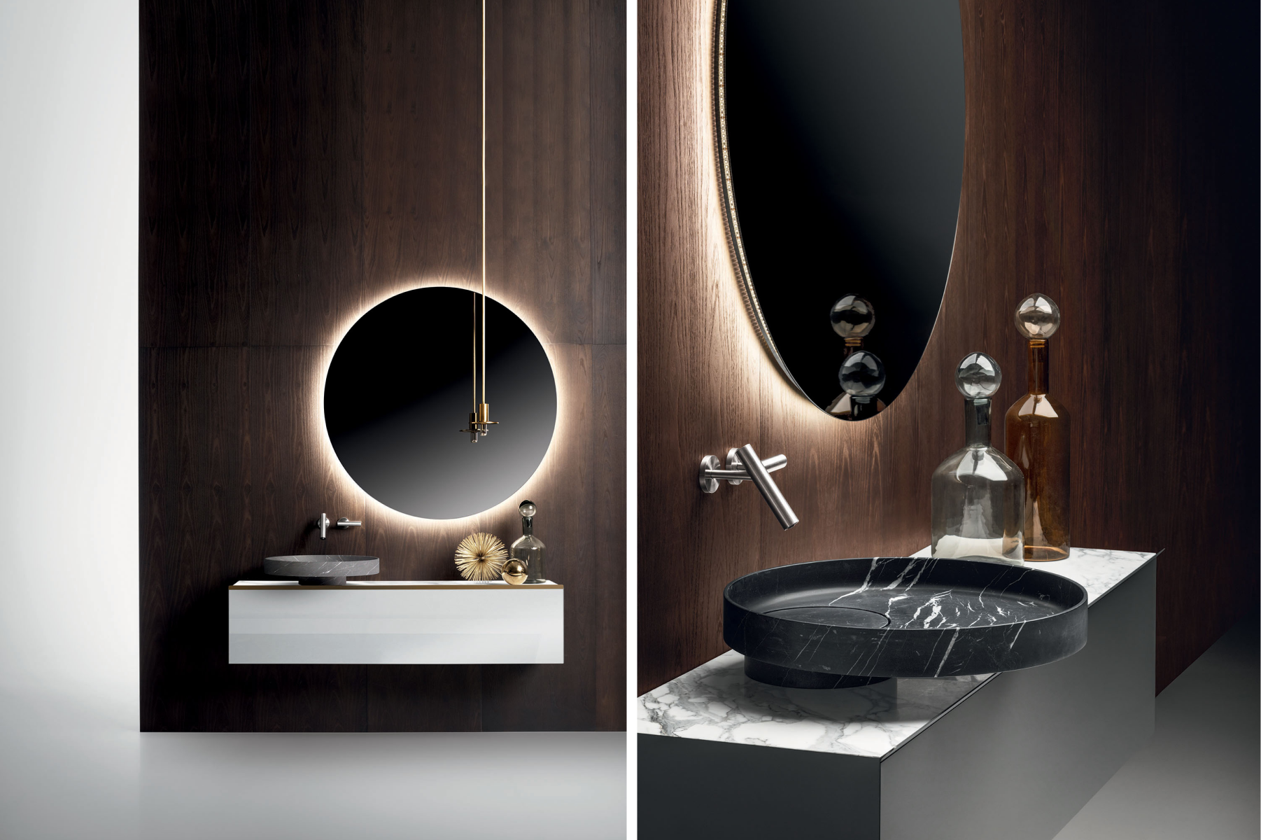 La progettazione razionale del designer, fatta di forme geometriche essenziali, incontra i materiali più preziosi e una cura produttiva sartoriale, dando vita a prodotti scultorei, dal forte carattere. La collezione include mobili porta lavabo, mobili contenitori, lavabi da appoggio e freestanding, realizzati giocando con diverse matericità.
