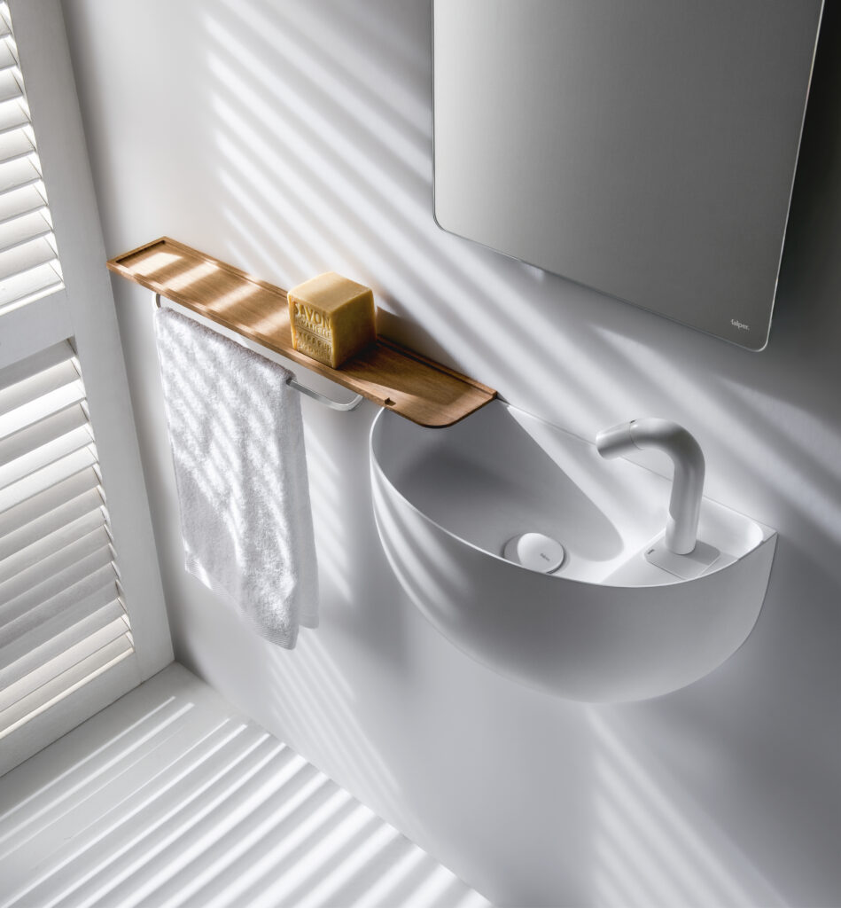 Designed for guest bathrooms or very small spaces, the handwash basins in this collection reproduce all the hallmarks of a Falper product on a reduced scale: advanced and refined materials, handcrafted precision details, and an essential yet sophisticated design.