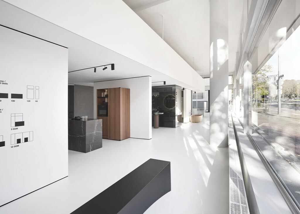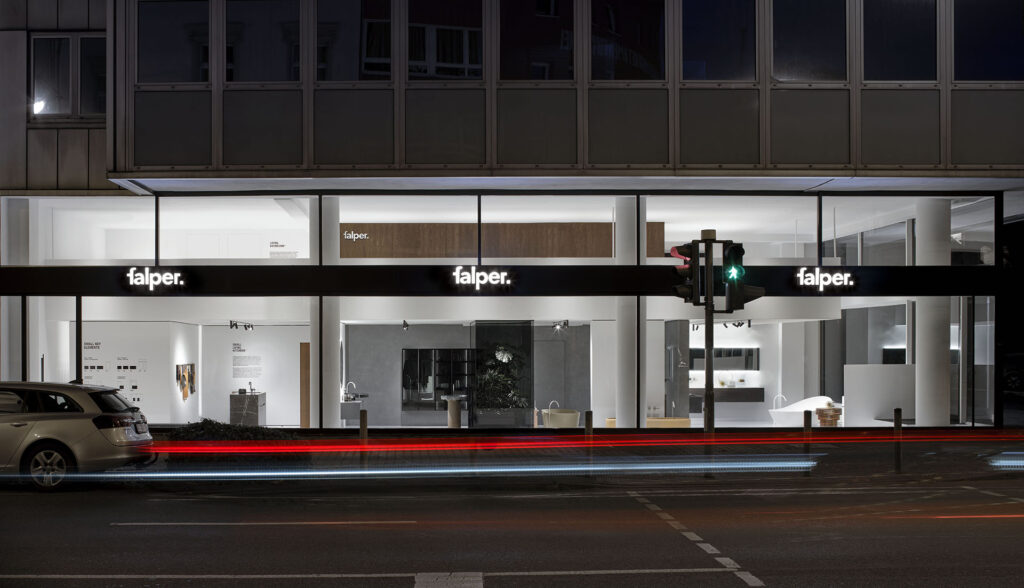 Falper Store Frankfurt during ISH 2023 – Join us to discover the best of design. The store project, curated by architect Victor Vasilev, embodies the company’s philosophy with an essential aesthetic, offering visitors a unique environment in which to discover all the characteristics of Living Bathroom, such as Eccentrico and Minimum, and the Small Living Kitchens, presented with the features of large kitchens in unprecedented dimensions, starting from 2.5 square metres.