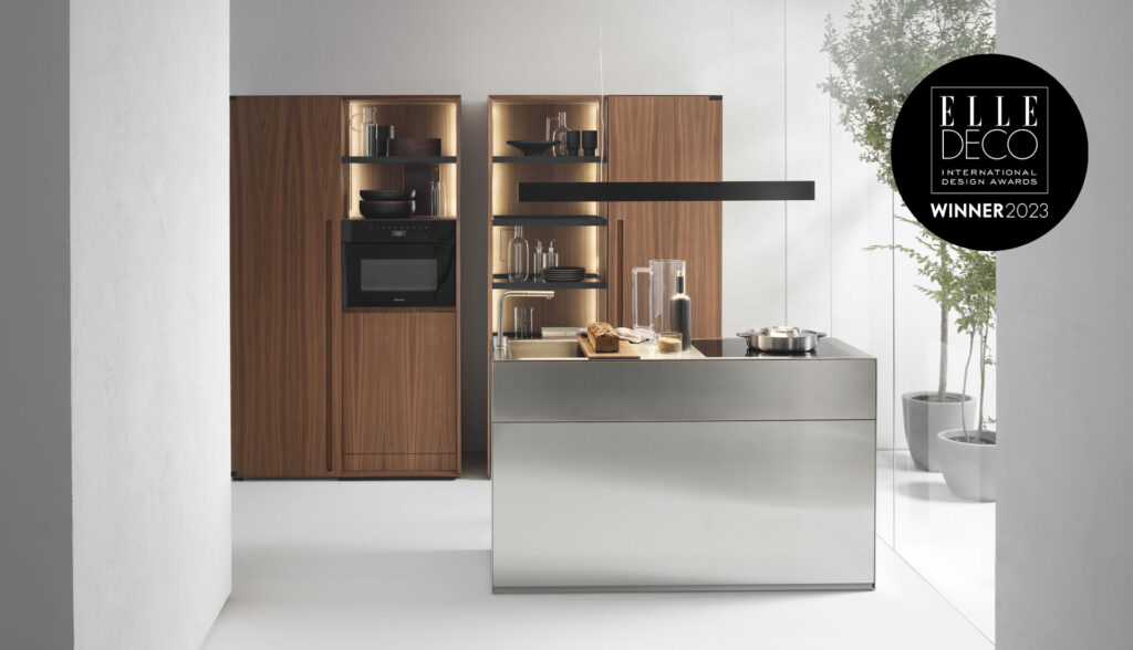 The EDIDA 2023 award was presented to designer Andrea Federici, accompanied by Luca Fallavena, CEO of Falper, at the exclusive ceremony held in the Fontana hall of the Museo del ‘900 in Piazza Duomo, during Milano Design Week. Living Kitchens™ is a system developed by Falper with the ambition of addressing a unique market niche, those who live in precious small volumes, potential clients with financial availability in the luxury bracket, who seek sophisticated objects representative of their status.