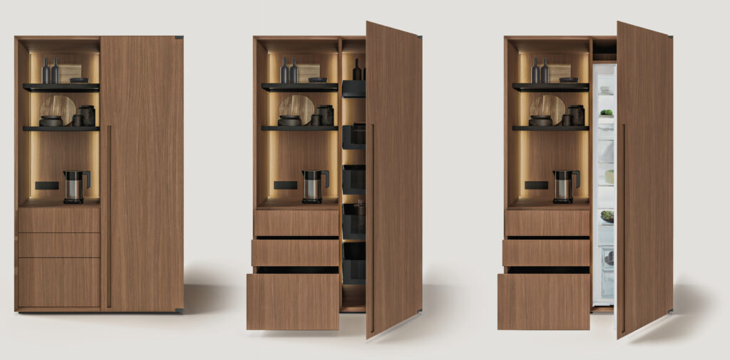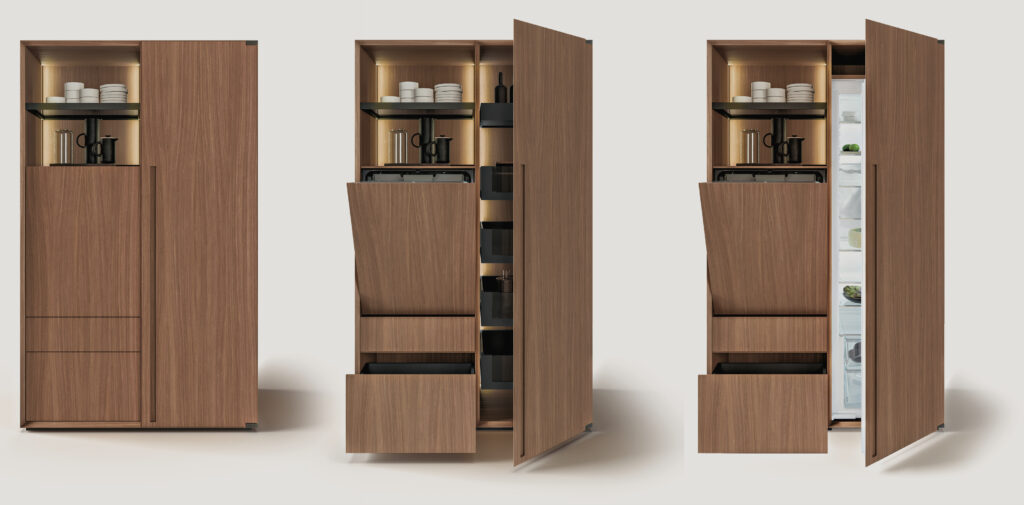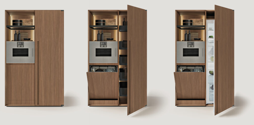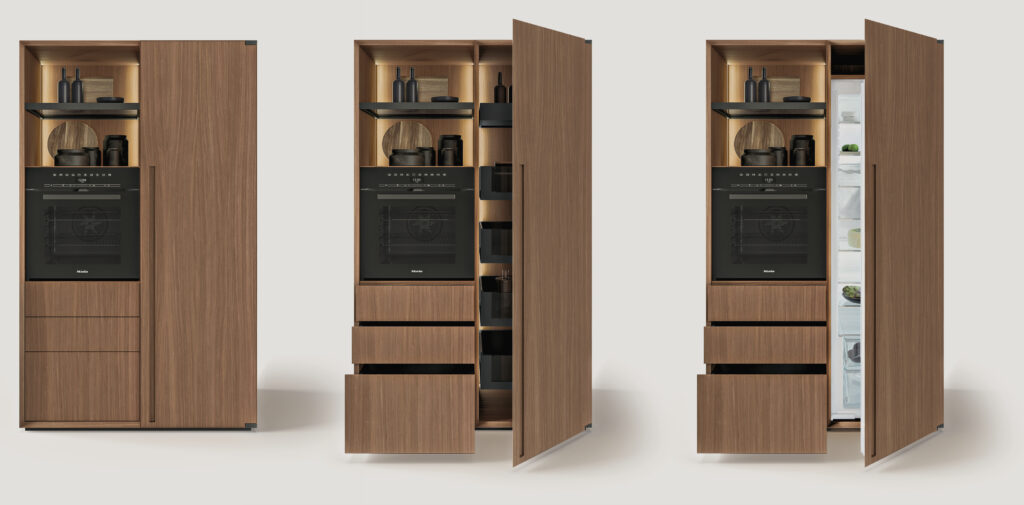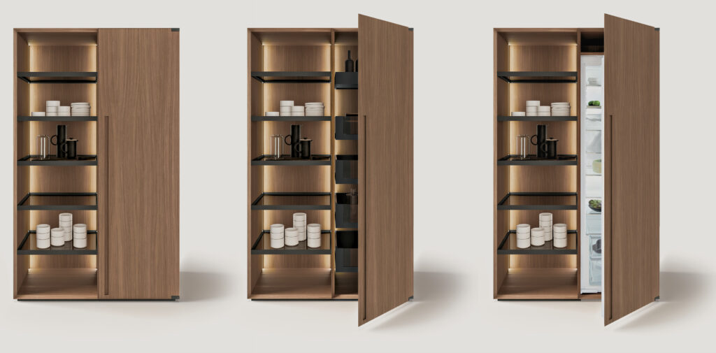 Madie is a unique element, finished on all sides and inside, internally configurable with eleven functional models. Made from plywood or MDF with birch veneering, 22mm thickness and 45° machining, it is available in wood finishes and in the catalogue’s gloss and matt lacquers.