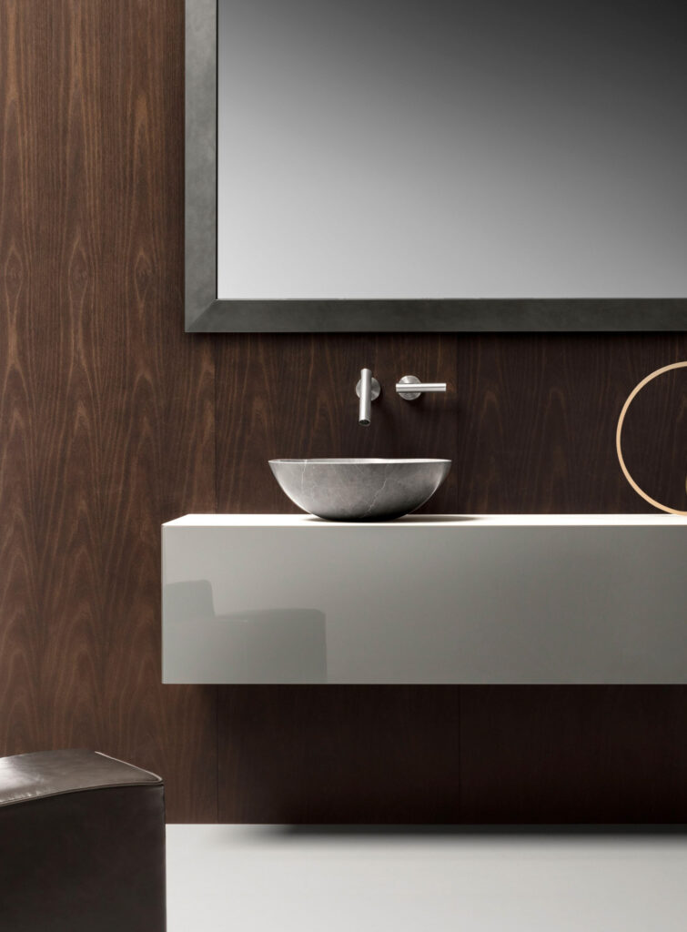 Lacquered finishes are hand-applied on E1/Carb2 MDF panels, using water-based paints on polyester primer for humid environments.