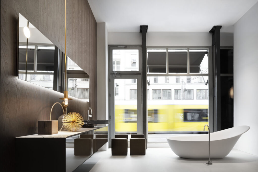 Situato in una location d’eccezione come Friedrichstraße, arteria e cuore pulsante di Berlino che racchiude nei suoi 3.5 chilometri la storia della capitale tedesca, Falper Berlin è caratterizzato da ampie vetrine, altezze suggestive ed elementi architettonici che contestualizzano l’architettura dello spazio con evidente connotazione Berlinese.