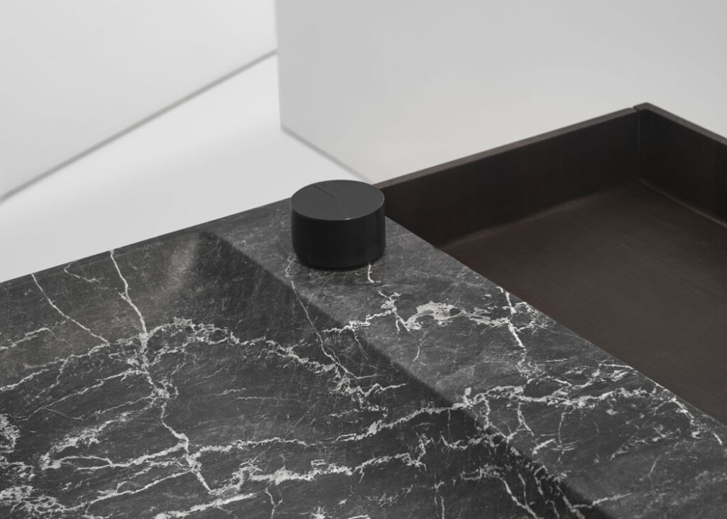 I cassetti in legno massello riprendono lavorazioni artigianali con dettagli di ebanisteria, esprimendo un’anima dal design innovativo. I cassetti fanno riferimento ad un’idea pratica di organizzazione, il cui spazio interno può essere organizzato in base alle preferenze personali. I cassetti possono essere montati sulla parte anteriore o sui lati e la configurazione interna può essere pianificata e personalizzata su misura. I lavabi in marmo o in Cristalplant® Bio Active esprimono nella forma una sofisticata essenzialità.